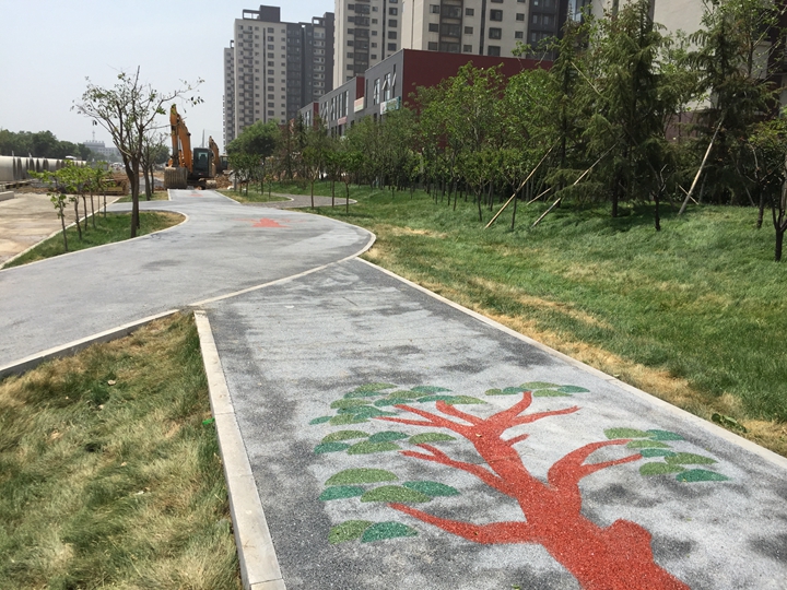 人行道分自由式綠道和平行式人行道兩種,均采用全透水結(jié)構(gòu)。
