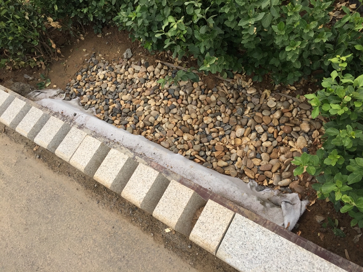機(jī)非隔離帶做下沉式綠化帶,寬度2.5~3.5,蓄水深度20cm